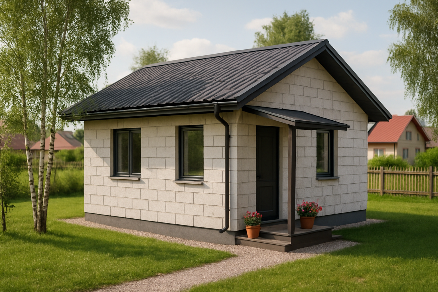 Дом 50 м² — это одна из самых популярных площадей для дачного строительства. Компактный, быстро строится, экономичный. Газобетона нужно немного — обычно одна доставка.